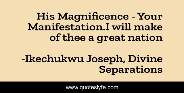 "Ikechukwu Joseph, Divine Separations Quotes." Quoteslyfe.com, 2025. Sat. 06 Dec. 2025. <https://www.quoteslyfe.com/quote/His-Magnificence-Your-Manifestation-I-will-make-209137>.