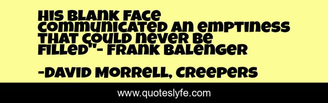 This page presents the quote "His blank face communicated an emptiness that could never be filled"- Frank Balenger". Author of this quote is David Morrell, Creepers. This quote is about sadness, sad-but-true, sad,.