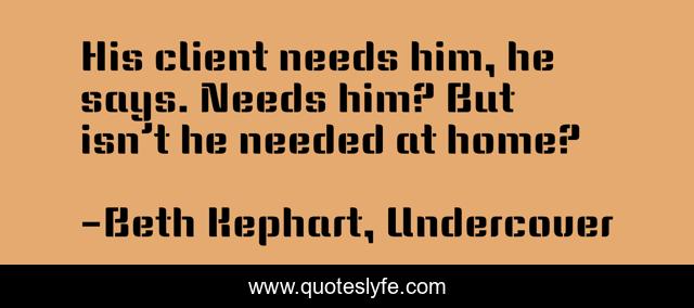 "Beth Kephart, Undercover Quotes." Quoteslyfe.com, 2025. Sat. 06 Dec. 2025. <https://www.quoteslyfe.com/quote/His-client-needs-him-he-says-Needs-182502>.
