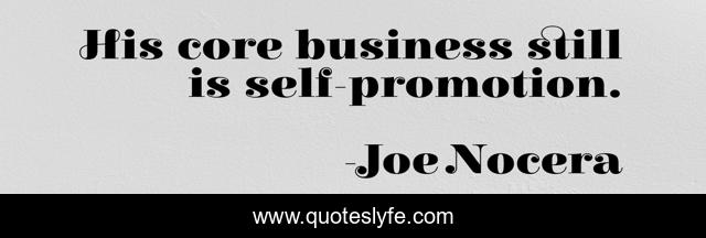 "Joe Nocera Quotes." Quoteslyfe.com, 2025. Fri. 05 Dec. 2025. <https://www.quoteslyfe.com/quote/His-core-business-still-is-self-promotion-179314>.