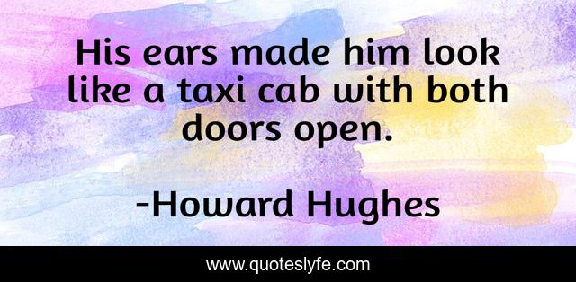 This page presents the quote "His ears made him look like a taxi cab with both doors open.". Author of this quote is Howard Hughes. This quote is about personal, appearance,.