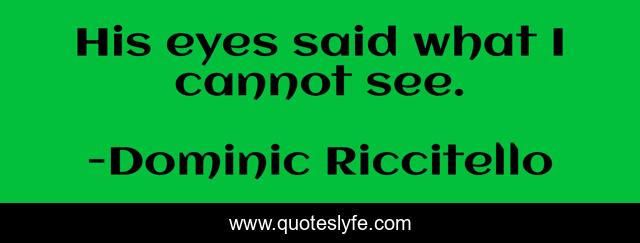 This page presents the quote "His eyes said what I cannot see.". Author of this quote is Dominic Riccitello. This quote is about blind, eyes, relationship, quote, emotions, feelings, truth, oblivious, thoughts,.