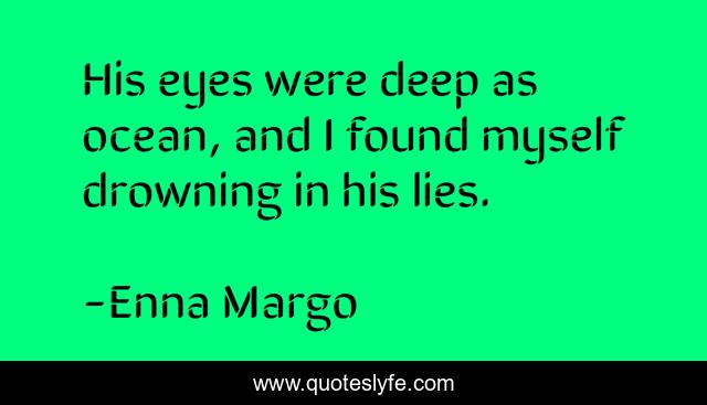 This page presents the quote "His eyes were deep as ocean, and I found myself drowning in his lies.". Author of this quote is Enna Margo. This quote is about eyes, love, philosophy, ocean, spirituality, him, affection,.