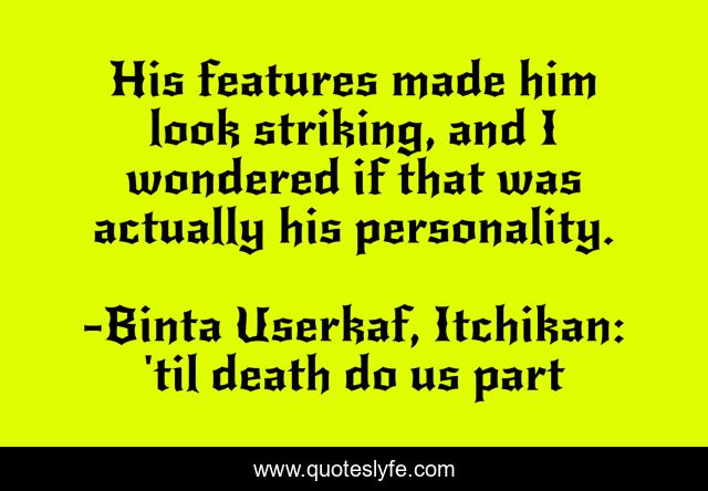 "Binta Userkaf, Itchikan: 'til death do us part Quotes." Quoteslyfe.com, 2025. Sat. 06 Dec. 2025. <https://www.quoteslyfe.com/quote/His-features-made-him-look-striking-and-178479>.