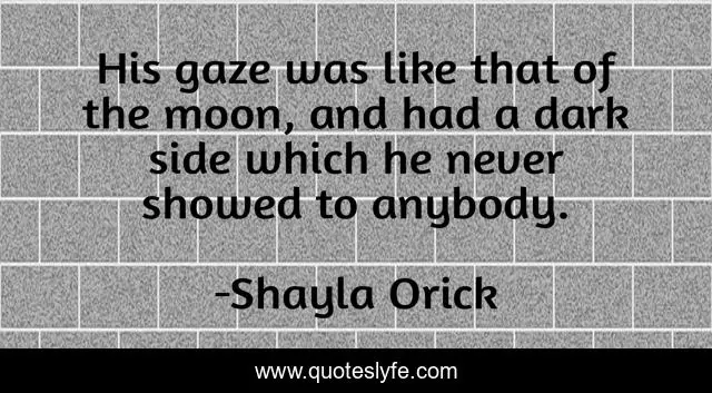 This page presents the quote "His gaze was like that of the moon, and had a dark side which he never showed to anybody.". Author of this quote is Shayla Orick. This quote is about ya, intense,.
