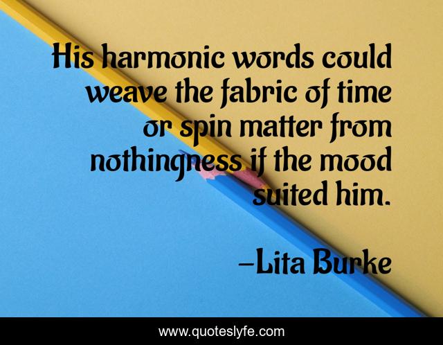 "Lita Burke Quotes." Quoteslyfe.com, 2025. Fri. 05 Dec. 2025. <https://www.quoteslyfe.com/quote/His-harmonic-words-could-weave-the-fabric-134235>.