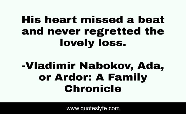 "Vladimir Nabokov, Ada, or Ardor: A Family Chronicle Quotes." Quoteslyfe.com, 2025. Mon. 08 Dec. 2025. <https://www.quoteslyfe.com/quote/His-heart-missed-a-beat-and-never-80882>.