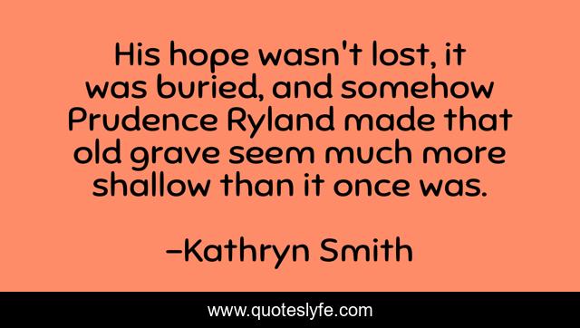 This page presents the quote "His hope wasn't lost, it was buried, and somehow Prudence Ryland made that old grave seem much more shallow than it once was.". Author of this quote is Kathryn Smith. This quote is about romance, hope,.