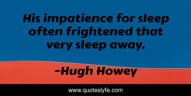 This page presents the quote "His impatience for sleep often frightened that very sleep away.". Author of this quote is Hugh Howey. This quote is about insomnia, sleep,.