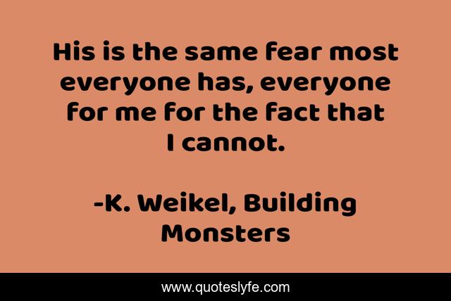 "K. Weikel, Building Monsters Quotes." Quoteslyfe.com, 2025. Fri. 05 Dec. 2025. <https://www.quoteslyfe.com/quote/His-is-the-same-fear-most-everyone-45473>.