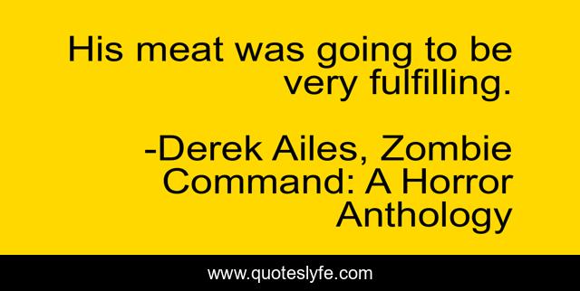 This page presents the quote "His meat was going to be very fulfilling.". Author of this quote is Derek Ailes, Zombie Command: A Horror Anthology. This quote is about horror, murderer, thriller,.