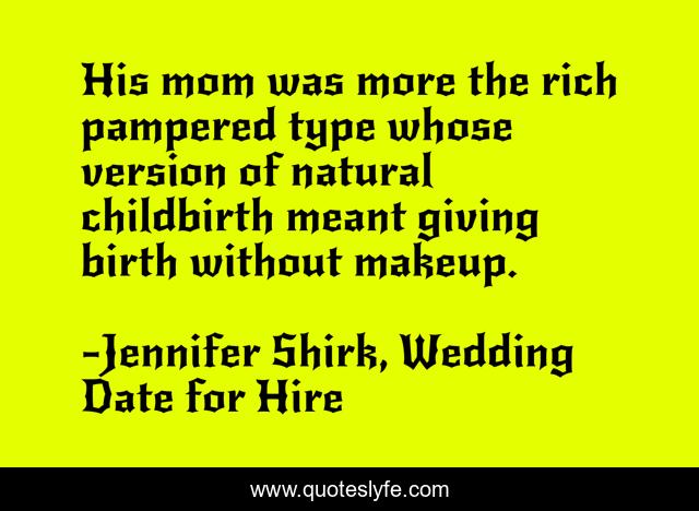 This page presents the quote "His mom was more the rich pampered type whose version of natural childbirth meant giving birth without makeup.". Author of this quote is Jennifer Shirk, Wedding Date for Hire. .