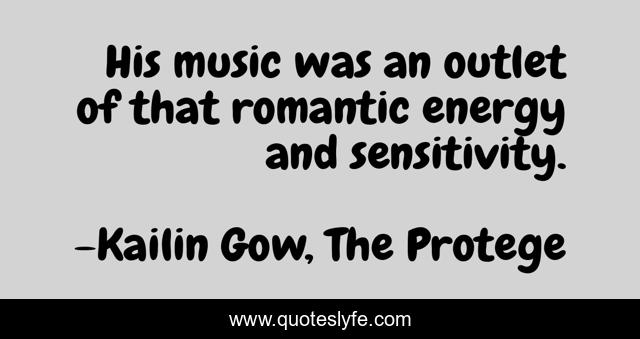 This page presents the quote "His music was an outlet of that romantic energy and sensitivity.". Author of this quote is Kailin Gow, The Protege. This quote is about kailin-gow, sebastian-sorensen, professor, the-protege, adult-romance, alpha-male, music, college, erotica,.