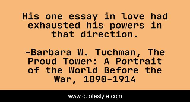 "Barbara W. Tuchman, The Proud Tower: A Portrait of the World Before the War, 1890-1914 Quotes." Quoteslyfe.com, 2025. Sun. 07 Dec. 2025. <https://www.quoteslyfe.com/quote/His-one-essay-in-love-had-exhausted-195540>.