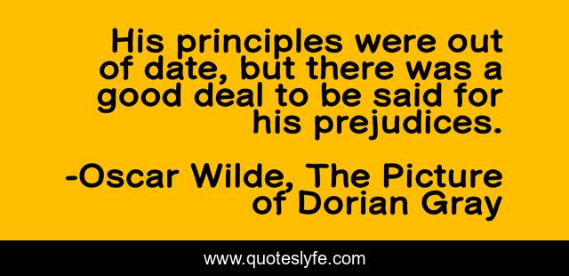This page presents the quote "His principles were out of date, but there was a good deal to be said for his prejudices.". Author of this quote is Oscar Wilde, The Picture of Dorian Gray. This quote is about witty, prejudice, principles,.