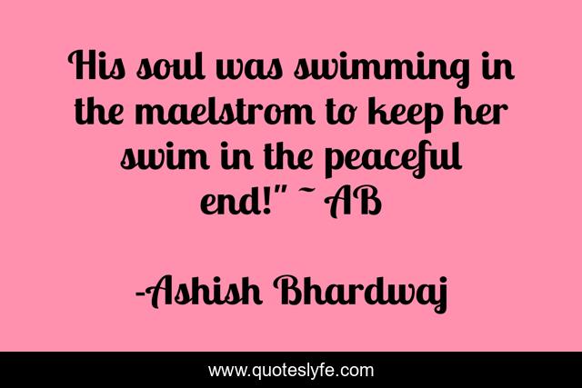 This page presents the quote "His soul was swimming in the maelstrom to keep her swim in the peaceful end!" ~ AB". Author of this quote is Ashish Bhardwaj. This quote is about love, soul, she, he, affection, togetherness,.