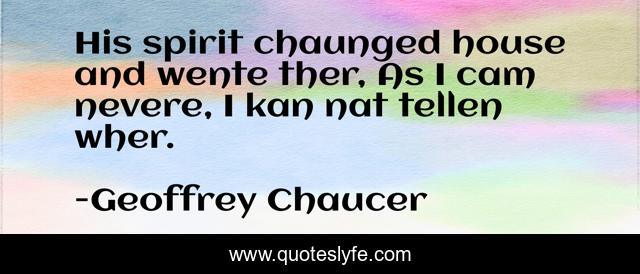 "Geoffrey Chaucer Quotes." Quoteslyfe.com, 2025. Sun. 07 Dec. 2025. <https://www.quoteslyfe.com/quote/His-spirit-chaunged-house-and-wente-ther-63614>.