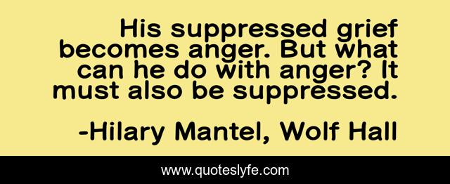 This page presents the quote "His suppressed grief becomes anger. But what can he do with anger? It must also be suppressed.". Author of this quote is Hilary Mantel, Wolf Hall. This quote is about suppressed-anger, grief, thomas-cromwell, suppression, anger, 1521-1529, an-occult-history-of-britain,.