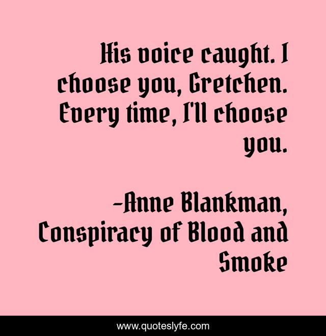"Anne Blankman, Conspiracy of Blood and Smoke Quotes." Quoteslyfe.com, 2025. Sat. 06 Dec. 2025. <https://www.quoteslyfe.com/quote/His-voice-caught-I-choose-you-Gretchen-198414>.