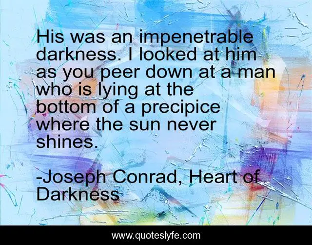 "Joseph Conrad, Heart of Darkness Quotes." Quoteslyfe.com, 2025. Mon. 08 Dec. 2025. <https://www.quoteslyfe.com/quote/His-was-an-impenetrable-darkness-I-looked-150030>.