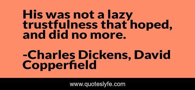 This page presents the quote "His was not a lazy trustfulness that hoped, and did no more.". Author of this quote is Charles Dickens, David Copperfield. This quote is about action, trust, laziness,.