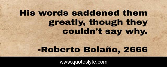 "Roberto Bolaño, 2666 Quotes." Quoteslyfe.com, 2025. Fri. 05 Dec. 2025. <https://www.quoteslyfe.com/quote/His-words-saddened-them-greatly-though-they-112617>.