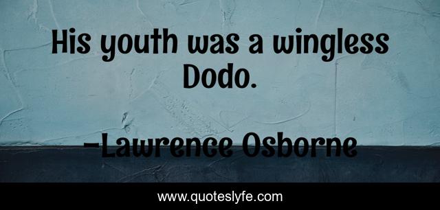 "Lawrence Osborne Quotes." Quoteslyfe.com, 2025. Sat. 06 Dec. 2025. <https://www.quoteslyfe.com/quote/His-youth-was-a-wingless-Dodo-217531>.