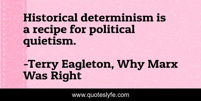 "Terry Eagleton, Why Marx Was Right Quotes." Quoteslyfe.com, 2025. Mon. 08 Dec. 2025. <https://www.quoteslyfe.com/quote/Historical-determinism-is-a-recipe-for-political-56628>.