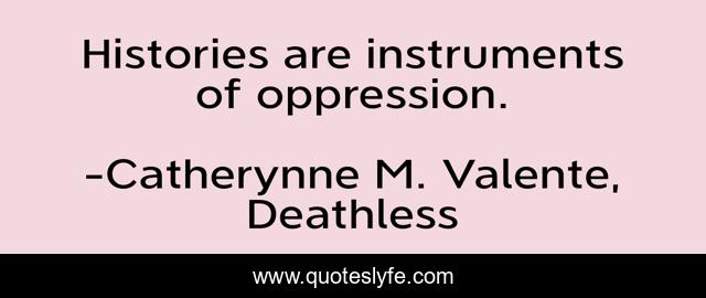 "Catherynne M. Valente, Deathless Quotes." Quoteslyfe.com, 2025. Fri. 05 Dec. 2025. <https://www.quoteslyfe.com/quote/Histories-are-instruments-of-oppression-254191>.