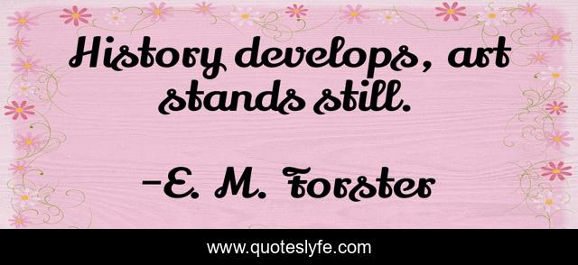 This page presents the quote "History develops, art stands still.". Author of this quote is E. M. Forster. This quote is about still, art, stands,.