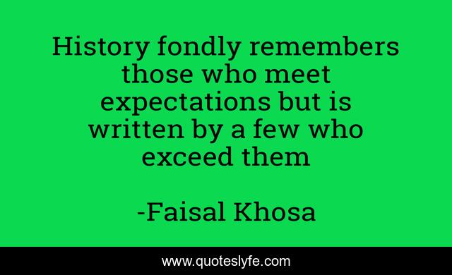This page presents the quote "History fondly remembers those who meet expectations but is written by a few who exceed them". Author of this quote is Faisal Khosa. This quote is about expectations, history,.