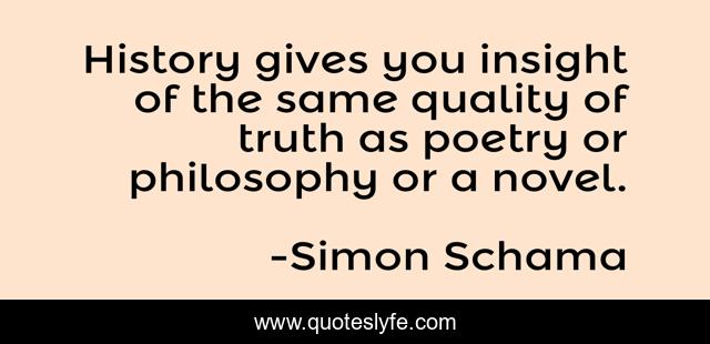 This page presents the quote "History gives you insight of the same quality of truth as poetry or philosophy or a novel.". Author of this quote is Simon Schama. This quote is about quality, truth, history,.