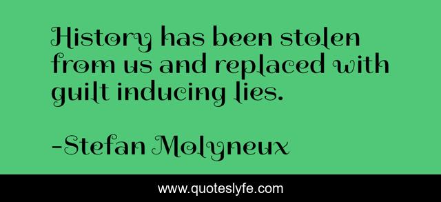 This page presents the quote "History has been stolen from us and replaced with guilt inducing lies.". Author of this quote is Stefan Molyneux. This quote is about globalists, cultural-marxism, schooling, college, libertarian, communism, white-guilt, brainwashing, liberty,.