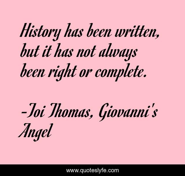 "Toi Thomas, Giovanni's Angel Quotes." Quoteslyfe.com, 2025. Sat. 06 Dec. 2025. <https://www.quoteslyfe.com/quote/History-has-been-written-but-it-has-44126>.