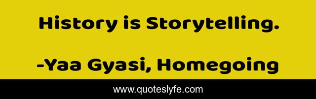 This page presents the quote "History is Storytelling.". Author of this quote is Yaa Gyasi, Homegoing. .