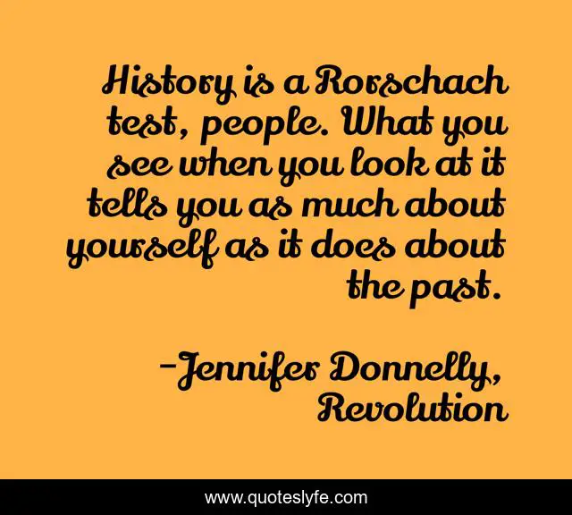 "Jennifer Donnelly, Revolution Quotes." Quoteslyfe.com, 2025. Mon. 08 Dec. 2025. <https://www.quoteslyfe.com/quote/History-is-a-Rorschach-test-people-What-70122>.
