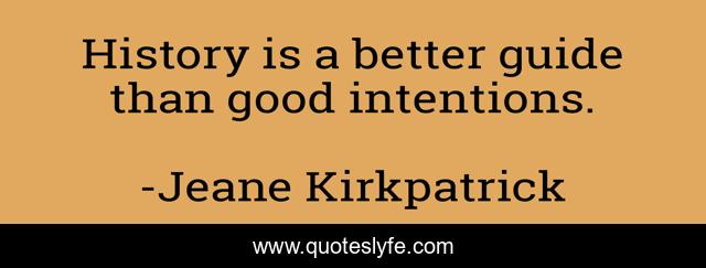 This page presents the quote "History is a better guide than good intentions.". Author of this quote is Jeane Kirkpatrick. .