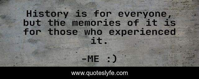 This page presents the quote "History is for everyone, but the memories of it is for those who experienced it.". Author of this quote is ME :). This quote is about memories, everyone, realize, experience, history,.