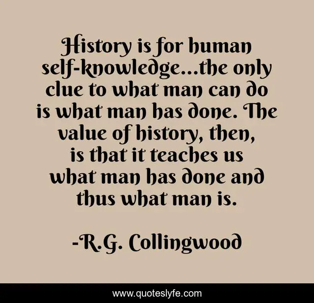 "R.G. Collingwood Quotes." Quoteslyfe.com, 2025. Sat. 06 Dec. 2025. <https://www.quoteslyfe.com/quote/History-is-for-human-self-knowledge-the-280961>.