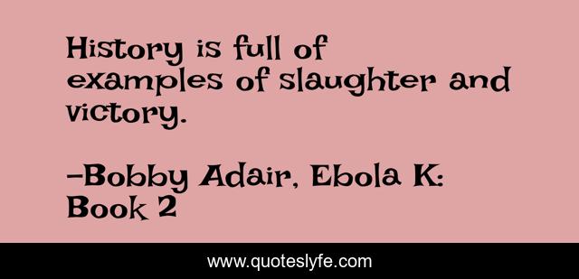 This page presents the quote "History is full of examples of slaughter and victory.". Author of this quote is Bobby Adair, Ebola K: Book 2. This quote is about victory, victim, war,.