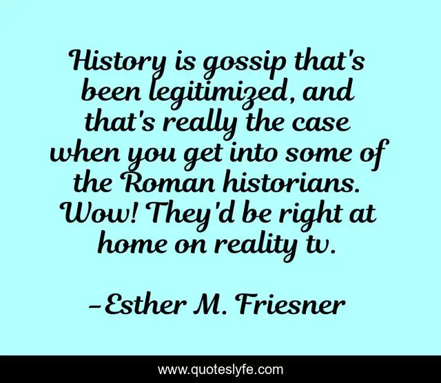 "Esther M. Friesner Quotes." Quoteslyfe.com, 2025. Tue. 09 Dec. 2025. <https://www.quoteslyfe.com/quote/History-is-gossip-that-s-been-legitimized-27453>.