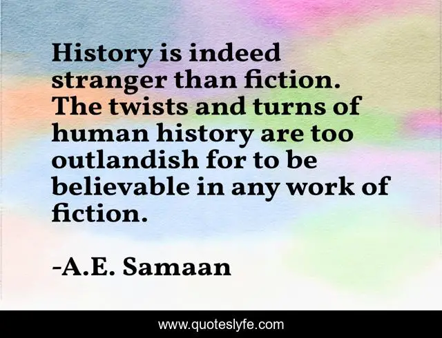 "A.E. Samaan Quotes." Quoteslyfe.com, 2025. Sat. 06 Dec. 2025. <https://www.quoteslyfe.com/quote/History-is-indeed-stranger-than-fiction-The-70518>.
