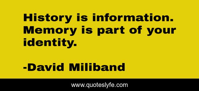 This page presents the quote "History is information. Memory is part of your identity.". Author of this quote is David Miliband. This quote is about identity, memory,.