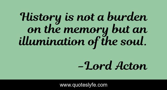 This page presents the quote "History is not a burden on the memory but an illumination of the soul.". Author of this quote is Lord Acton. This quote is about soul, burden, memory,.
