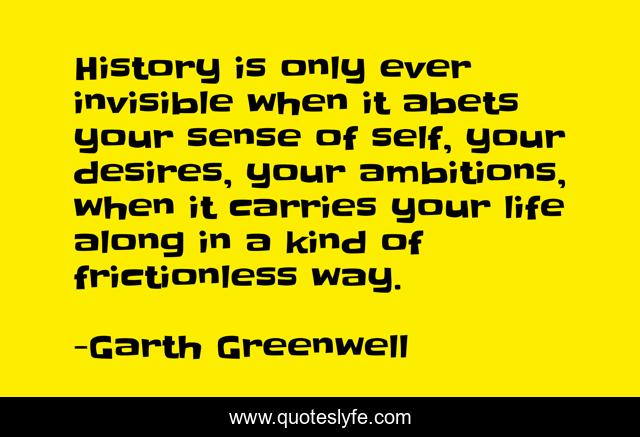 This page presents the quote "History is only ever invisible when it abets your sense of self, your desires, your ambitions, when it carries your life along in a kind of frictionless way.". Author of this quote is Garth Greenwell. This quote is about privilege, history,.