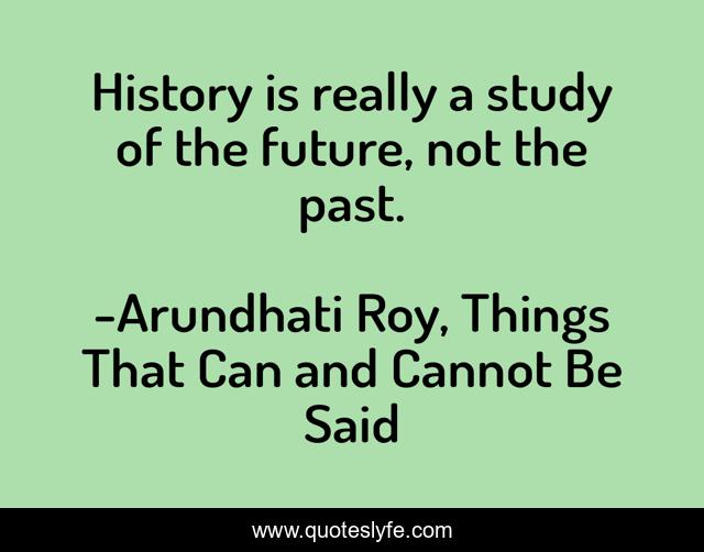 This page presents the quote "History is really a study of the future, not the past.". Author of this quote is Arundhati Roy, Things That Can and Cannot Be Said. This quote is about past, politics, future, history,.