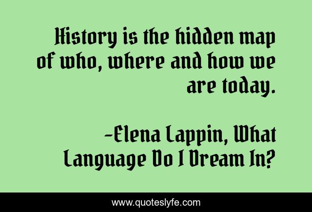 "Elena Lappin, What Language Do I Dream In? Quotes." Quoteslyfe.com, 2025. Fri. 05 Dec. 2025. <https://www.quoteslyfe.com/quote/History-is-the-hidden-map-of-who-70457>.