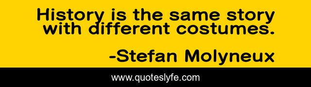 This page presents the quote "History is the same story with different costumes.". Author of this quote is Stefan Molyneux. This quote is about force, government, freedom, violence, statism, liberty, voluntaryism, libertarian, coercion,.