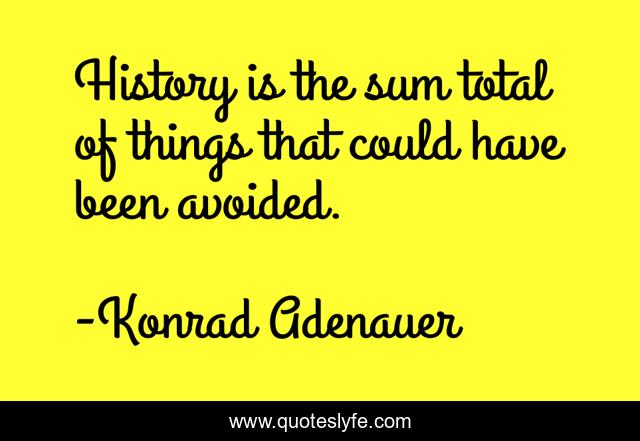 This page presents the quote "History is the sum total of things that could have been avoided.". Author of this quote is Konrad Adenauer. This quote is about things, sum total, sum,.