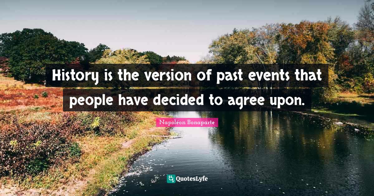 This page presents the quote "History is the version of past events that people have decided to agree upon.". Author of this quote is Napoléon Bonaparte. This quote is about past, history,.